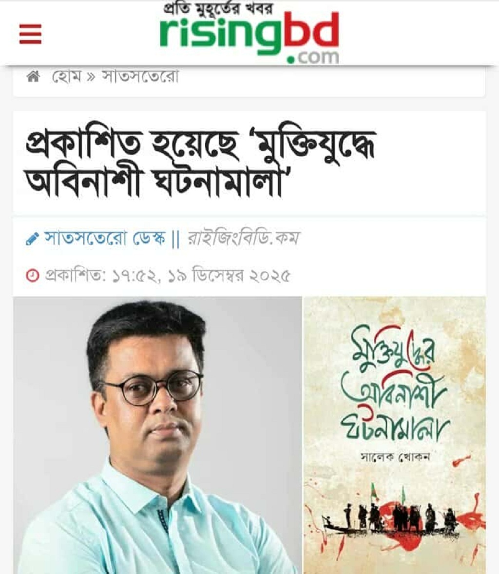 রাইজিংবিডি ডটকমে: প্রকাশিত হয়েছে `মুক্তিযুদ্ধের অবিনাশী ঘটনামালা’