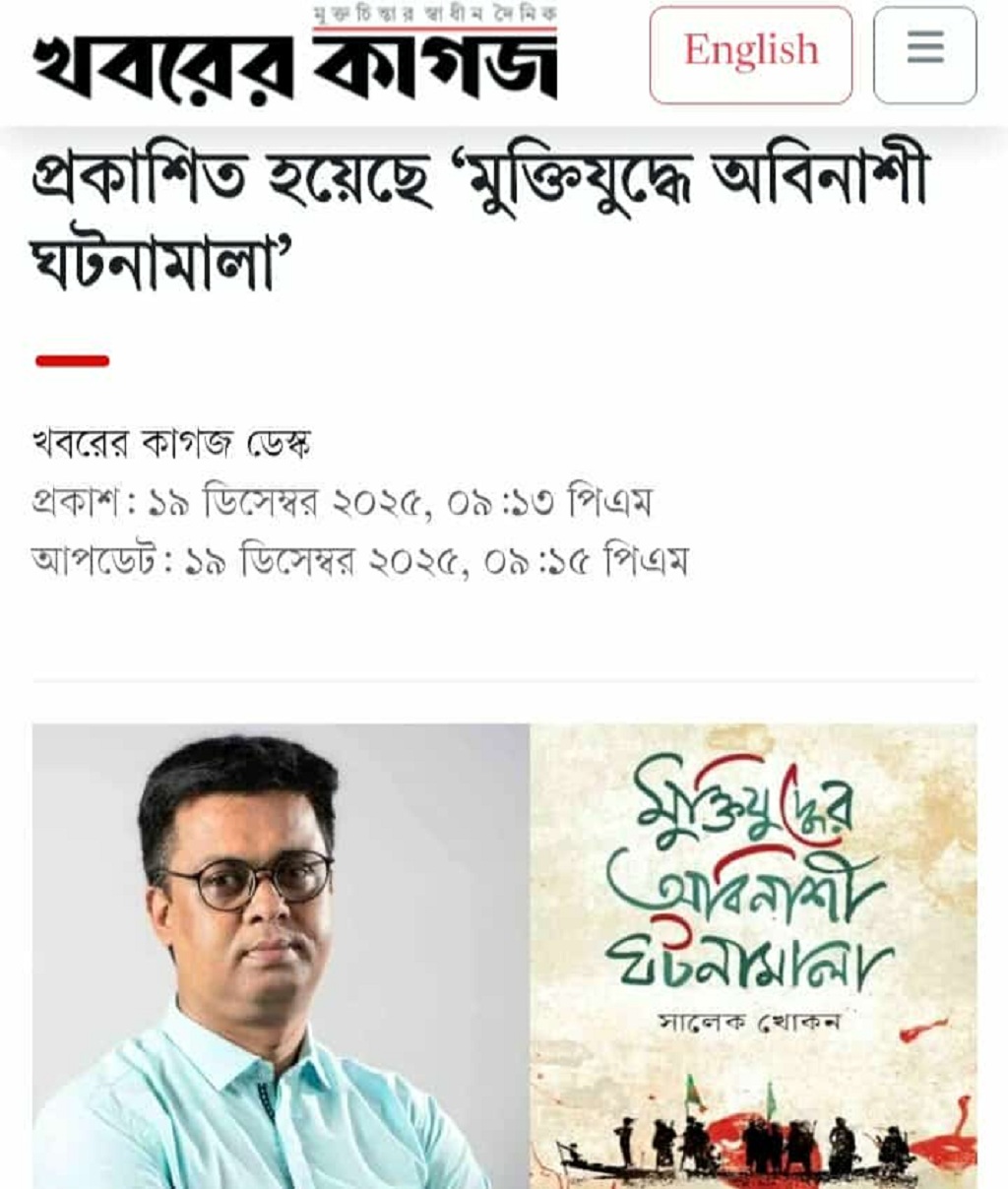 বাংলিএইজ ডটকমে: প্রকাশিত হলো সালেক খোকনের নতুন গবেষণাগ্রন্থ ‘মুক্তিযুদ্ধে অবিনাশী ঘটনামালা’