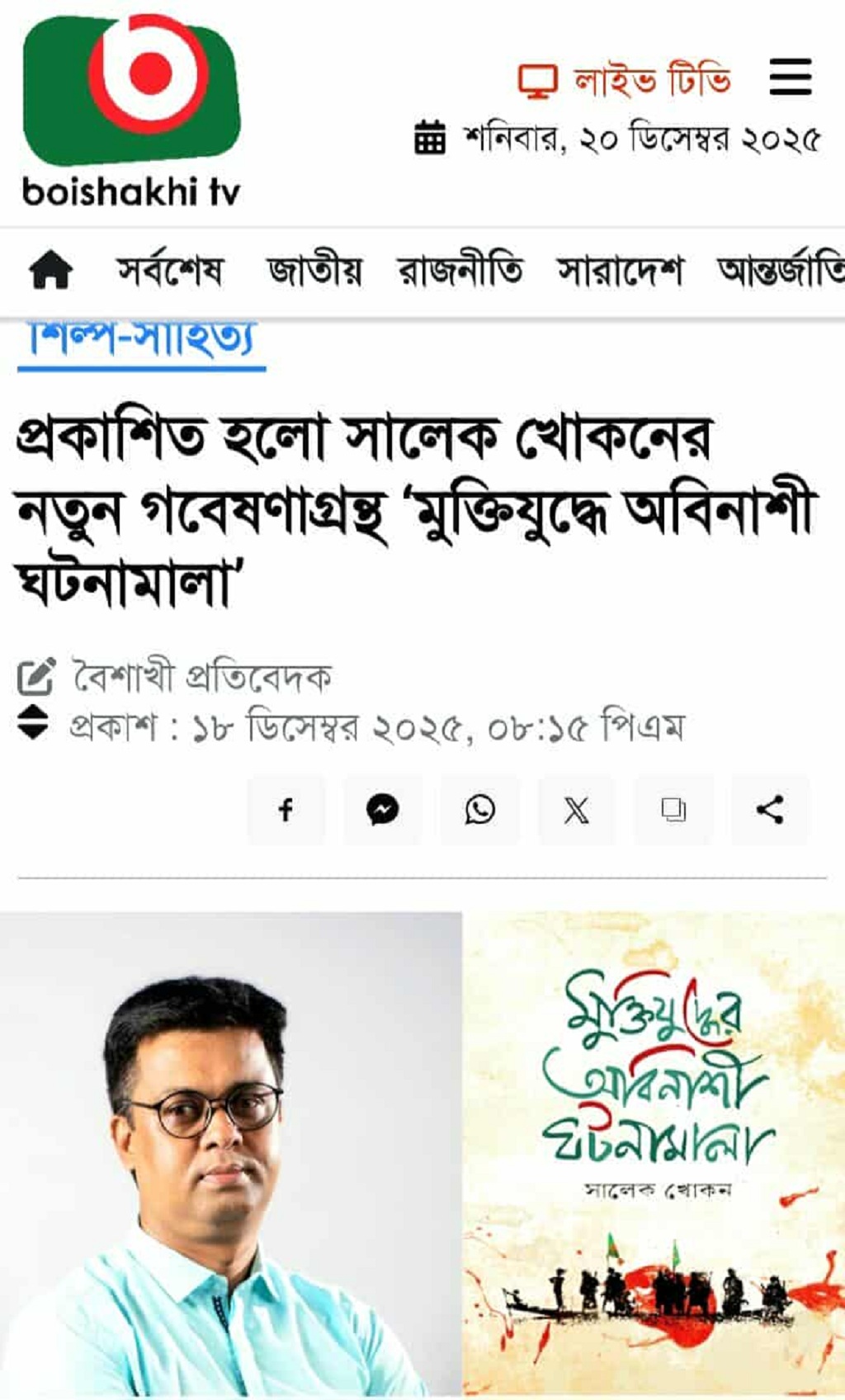 বৈশাখি টিভি: প্রকাশিত হলো সালেক খোকনের নতুন গবেষণাগ্রন্থ ‘মুক্তিযুদ্ধে অবিনাশী ঘটনামালা’