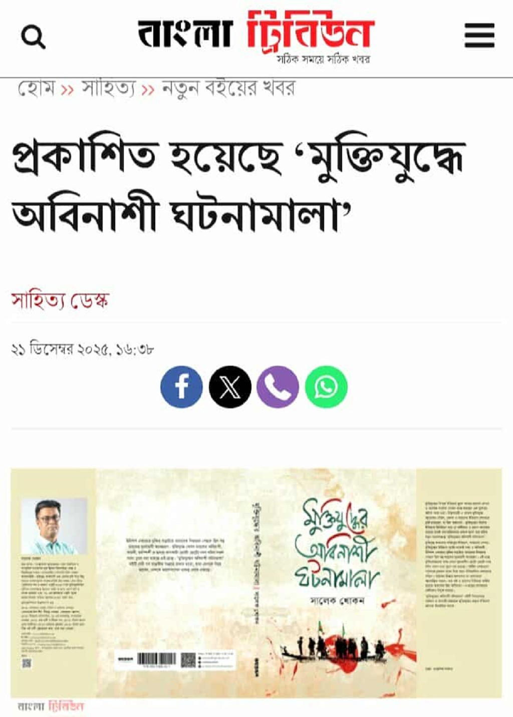 বাংলট্রিবিউনে: প্রকাশিত হয়েছে ‘মুক্তিযুদ্ধে অবিনাশী ঘটনামালা’
