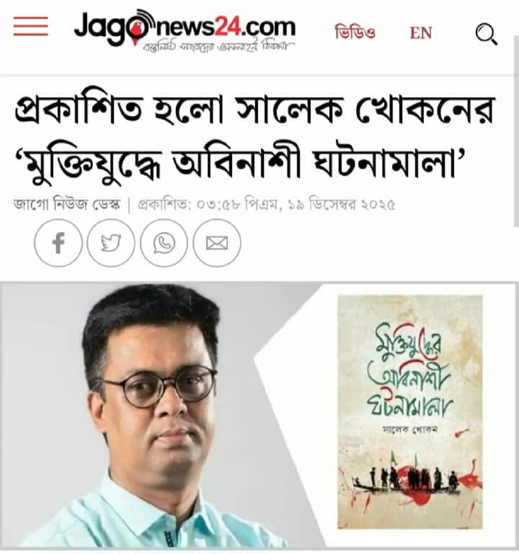 জাগোনিউজ টোয়েন্টিফোর ডটকমে: প্রকাশিত হলো সালেক খোকনের ‘মুক্তিযুদ্ধে অবিনাশী ঘটনামালা’